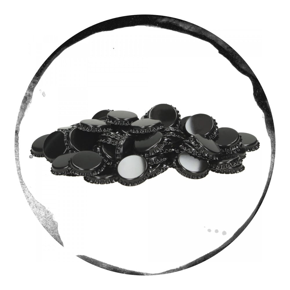 Pachet de capace metalice negre (200 bucati) cu diametrul de 29 mm. Similare cu cele folosite in fabricile de bere pentru capsarea sticlelor după îmbuteliere.